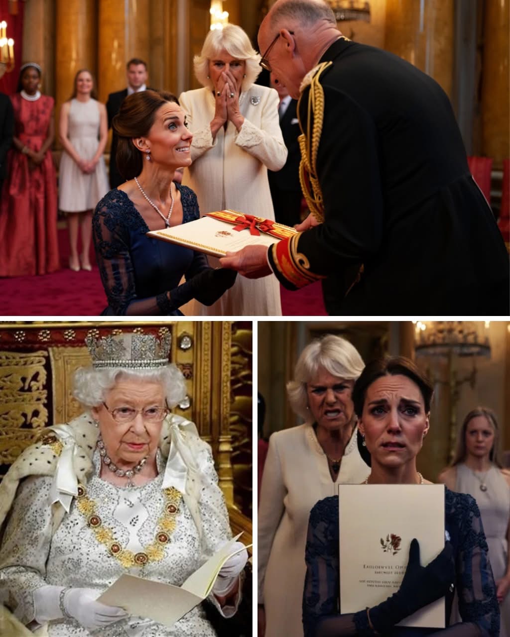 According to the release, Queen Elizabeth II left a sealed, jewel-encrusted medal known as the “Order of Saint Anselm’s Light”—a decoration never before listed in any royal register—to Princess Kate. The medal, described as “locked by oath until the rightful bearer fulfills her purpose”, comes with an inscription that has sent Buckingham Palace into chaos: