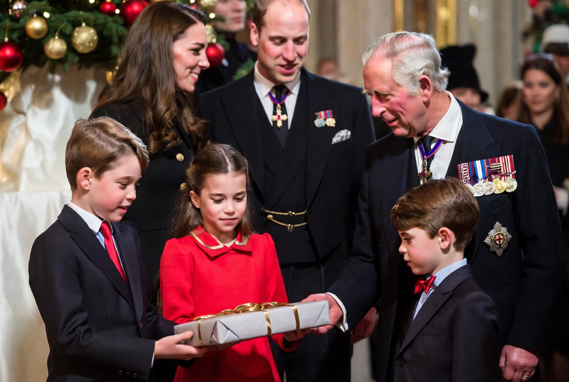 In a year shadowed by cancer battles, family rifts, and relentless public scrutiny, Buckingham Palace witnessed something so pure and tender on December 9, 2025, that even the most seasoned courtiers were reduced to tears. During the annual pre-Christmas reception for staff and their families, an unscripted, utterly magical moment unfolded that reminded the world why the British monarchy still holds hearts captive: Prince George, Princess Charlotte, and Prince Louis personally presented their grandfather, King Charles III, with Christmas gifts they had made themselves, right there in front of 800 stunned guests.