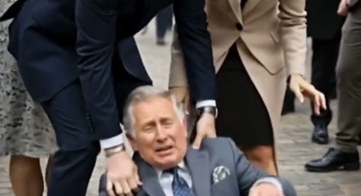 London — Buckingham Palace has fallen into a state of mourning and confusion tonight after a deeply emotional and unexpected appearance by King Charles III outside the Palace gates. Under the dim lights of a rain-soaked London evening, the monarch appeared frail, pale, and visibly shaken, clutching a handkerchief as he slowly approached the microphones prepared for his sudden address. As onlookers and reporters fell silent, the King’s voice trembled: “I regret to tell you… Queen Camilla…” He paused — visibly fighting tears —