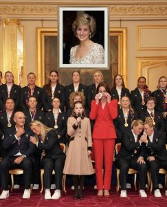Toward the end of the visit, as the group prepared to depart, Princess Charlotte approached a small cluster of Red Roses players who were standing near a display of memorabilia. Among the items was a framed photograph of Princess Diana wearing an England rugby shirt during a 1990s visit to Twickenham. Diana had been a passionate supporter of women’s sport and rugby in particular, often attending matches and championing female athletes long before it was common.