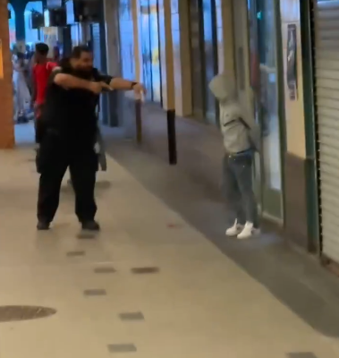 A tense and dramatic moment unfolded at a local shopping plaza yesterday afternoon when a 15-year-old teenager brandished a knife during an argument — only to be confronted by an off-duty police officer who drew his service weapon and quickly deescalated the situation.